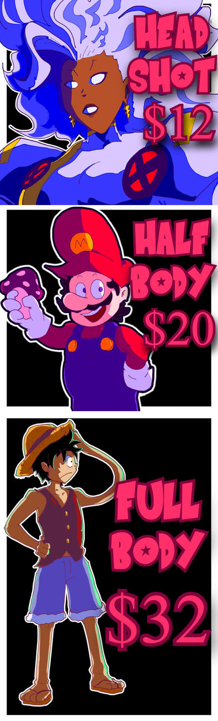 Thank you for coming here, please read the following words before you continue:-I mainly do character work, like OCs or random characters I like from shows, like Goku or Mr Frog from Smiling Friends-Make sure you are fully ready to commission me, that includes your materials/graphics and your preferred payment method.-Payment will be done through mainly Paypal and Cashapp, if you have another preferred method of payment please be sure to tell me-For any reason, I can not accept your comission, it may be to complicated for me or it's just plain illegal-When giving me sources, make sure to not ask me to replicate another artist style, you shall recieve quality Nintencom Art-I will send you an initial sketch of what you want and if you give your approval, I will request an upfront payment of 50% in advance-The client must clarify a deadline, let me know when you would need/want your art work as soon as possible-A client can use their artwork for personal use, but attempting to profit off the artwork is not allowed under any circumstances, if they want to post it on their social media they can with proper credit-I may want to use my commission work for my portfolio, but a client can ask me not to use the artwork there for any reason they have-During my process, I will keep you updated by showing you the work in progress, be free to tell me what changes you want. But I will at most only allow two reivisons to the sketch and the coloring